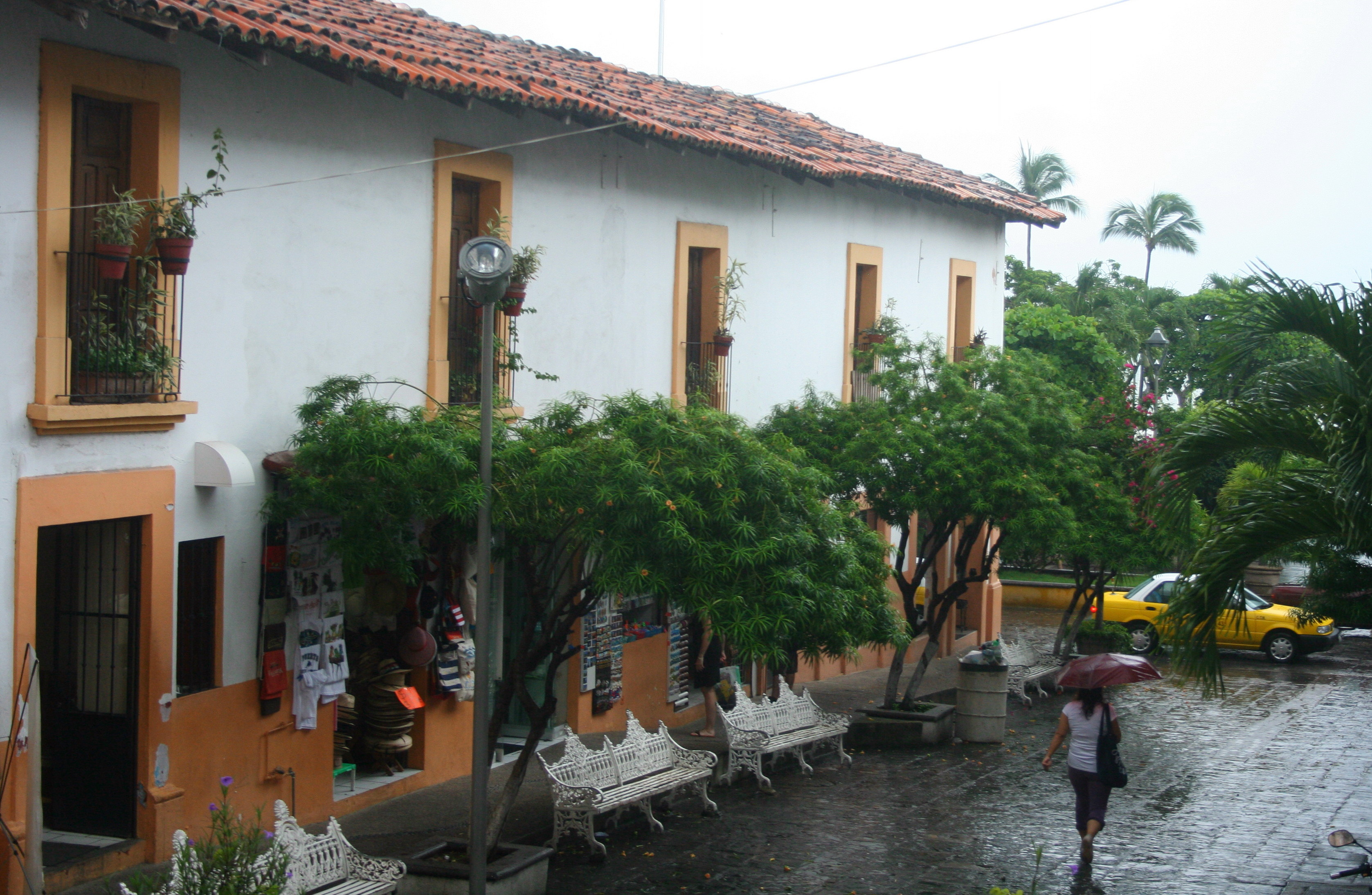 Não faltam cafés, bares e restaurantes, ou lojas, onde esperar a chuva passar. Nas lojas, o que mais se encontra são azulejos, artesanato em couro ou madeira e elaboradas peças com miçangas feitas pelos índios huichol, descendentes dos astecas. Entre os restaurantes, há de casas do que se convencionou chamar de comida típica mexicana a filiais de redes americanas, como Bubba Gump Shrimp Co.