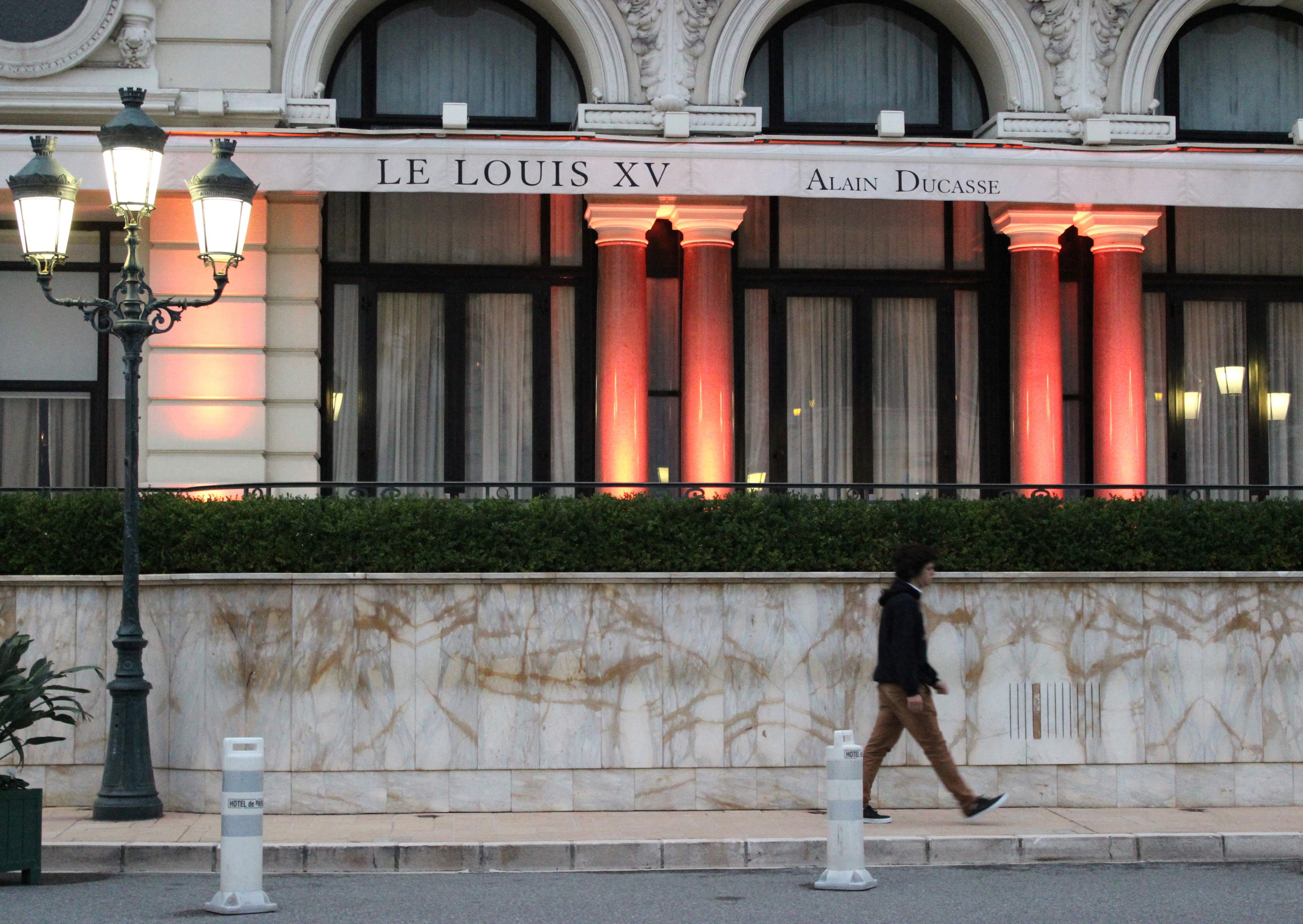 Alain Ducasse à l’Hôtel de Paris é um ponto turístico, e continuou assim inclusive durante as obras. À noite, a linda iluminação na fachada histórica do hotel e do restaurante atrai visitantes para selfies, fotos de casal, de grupo. O ponto é tão disputado para registros fotográficos quanto a entrada do Cassino de Monte-Carlo e seus carros de luxo.