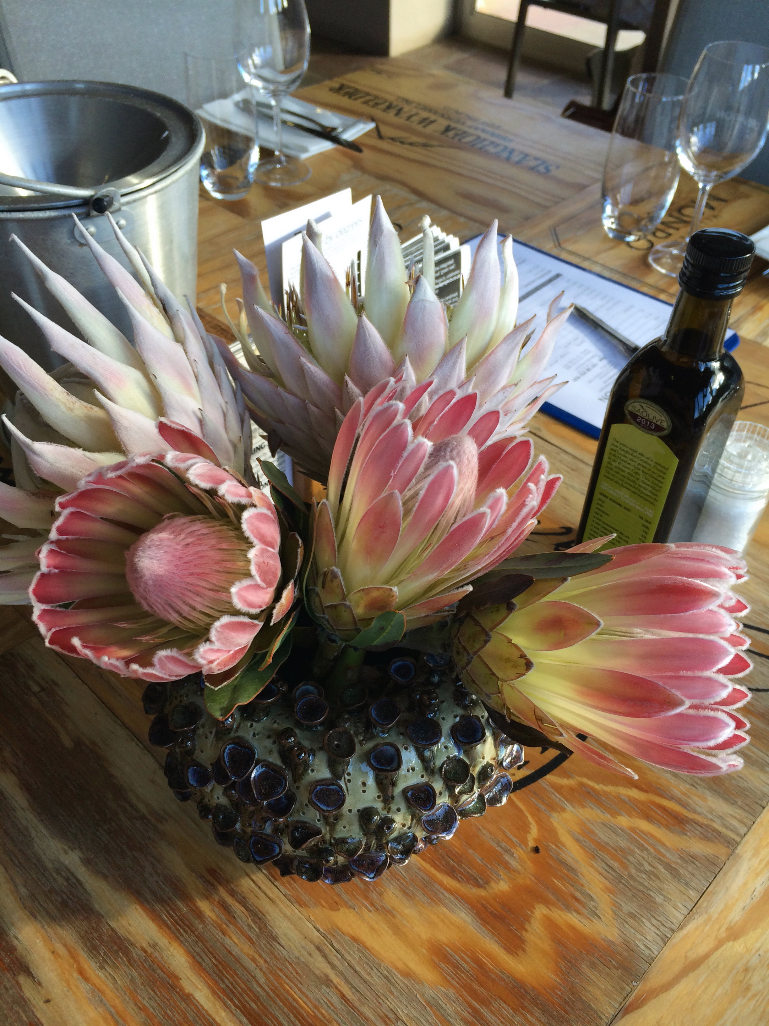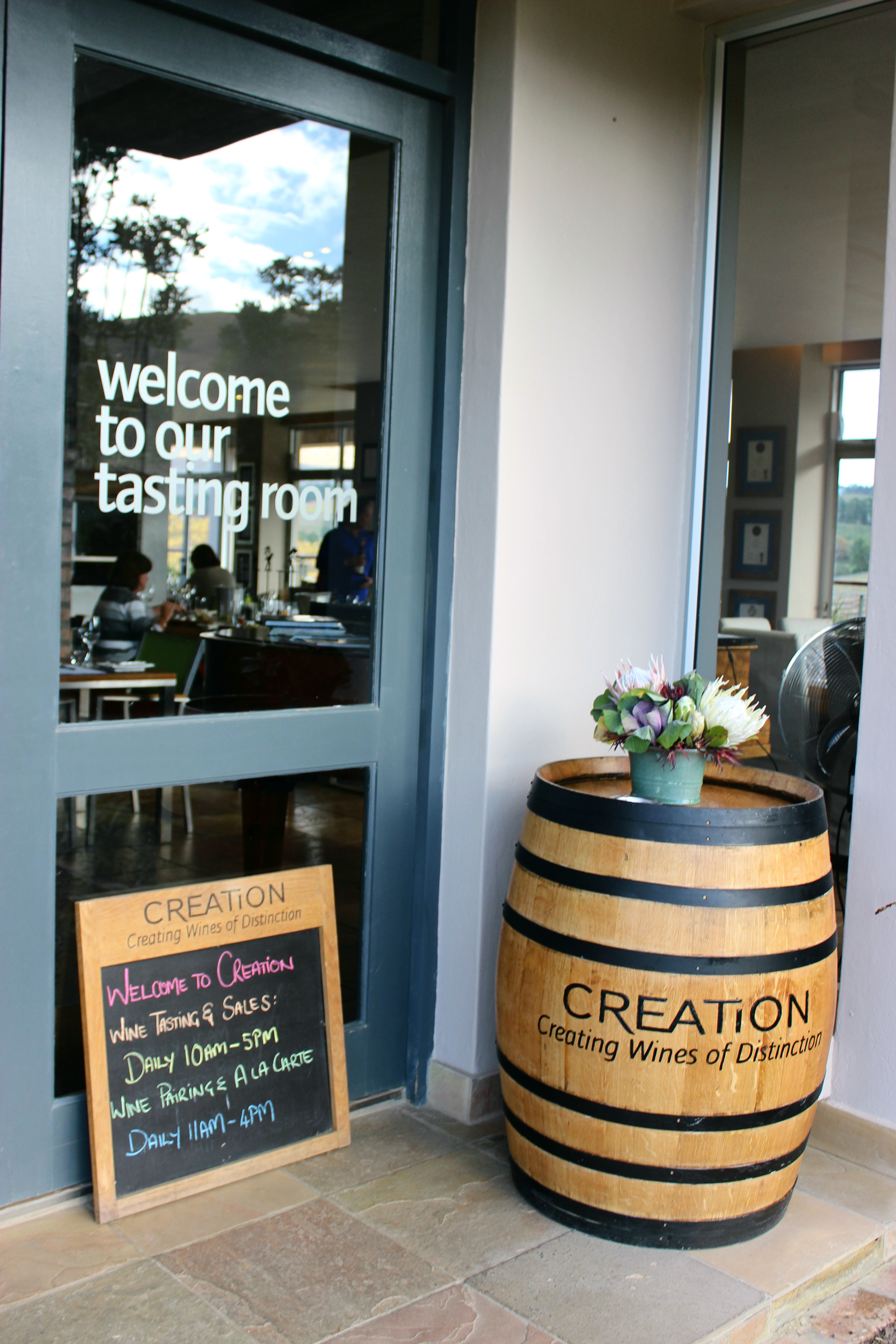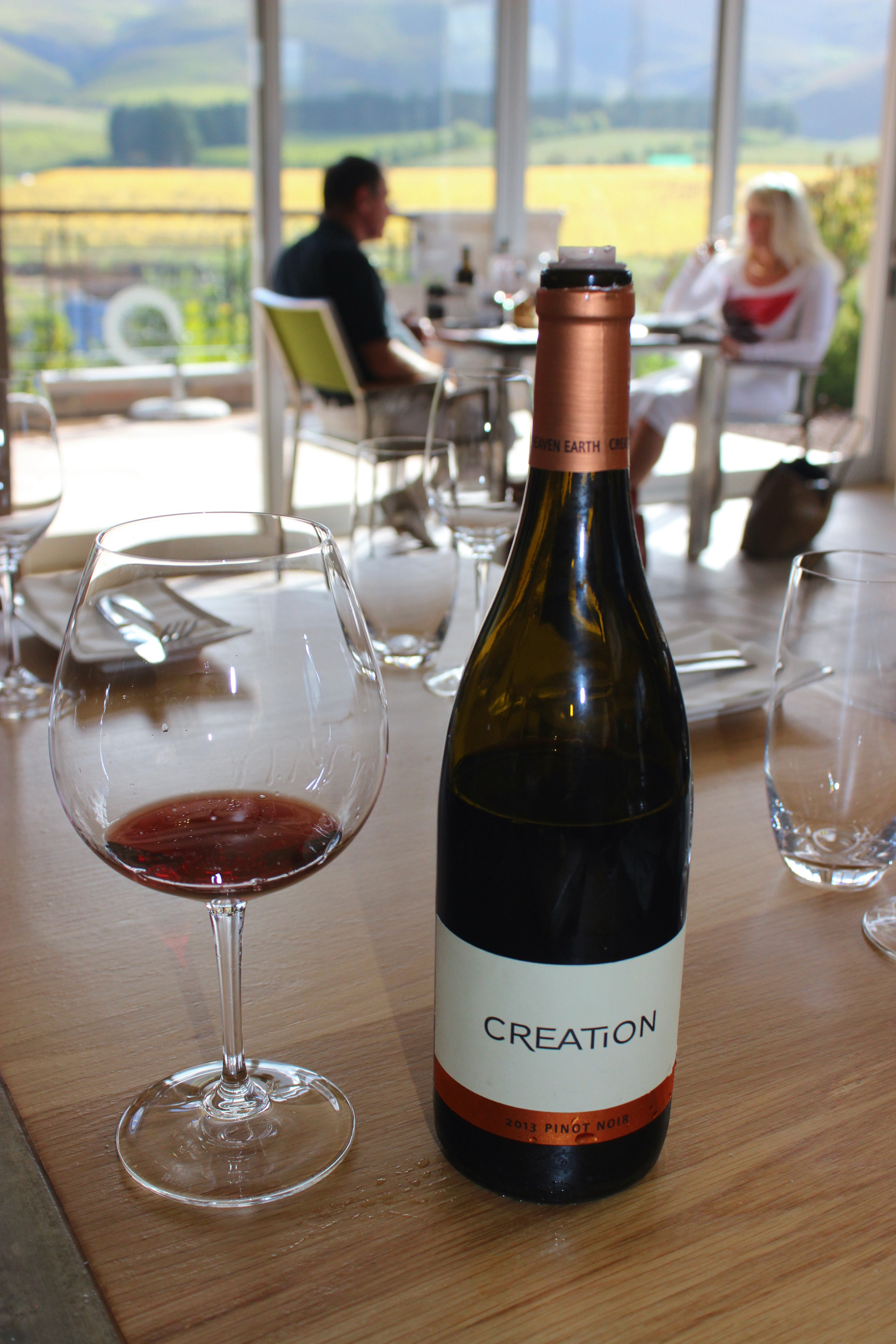Mais adiante, está a Newton Jonhson Wines. Seu restaurante envidraçado permite uma vista deslumbrante para o vale. Infelizmente, foi a única vinícola visitada onde o serviço deixou a desejar. A última vinícola na qual paramos, no final do vale, foi a badalada Creation Wines. Além da linda paisagem dos vinhedos, há rosas, lavandas e fynbos por toda a parte. O restaurante estava lotado em uma sexta-feira à tarde. Em vez de almoço, optamos pela degustação harmonizada com canapés, que faz a fama da vinícola. E foi uma ótima escolha.