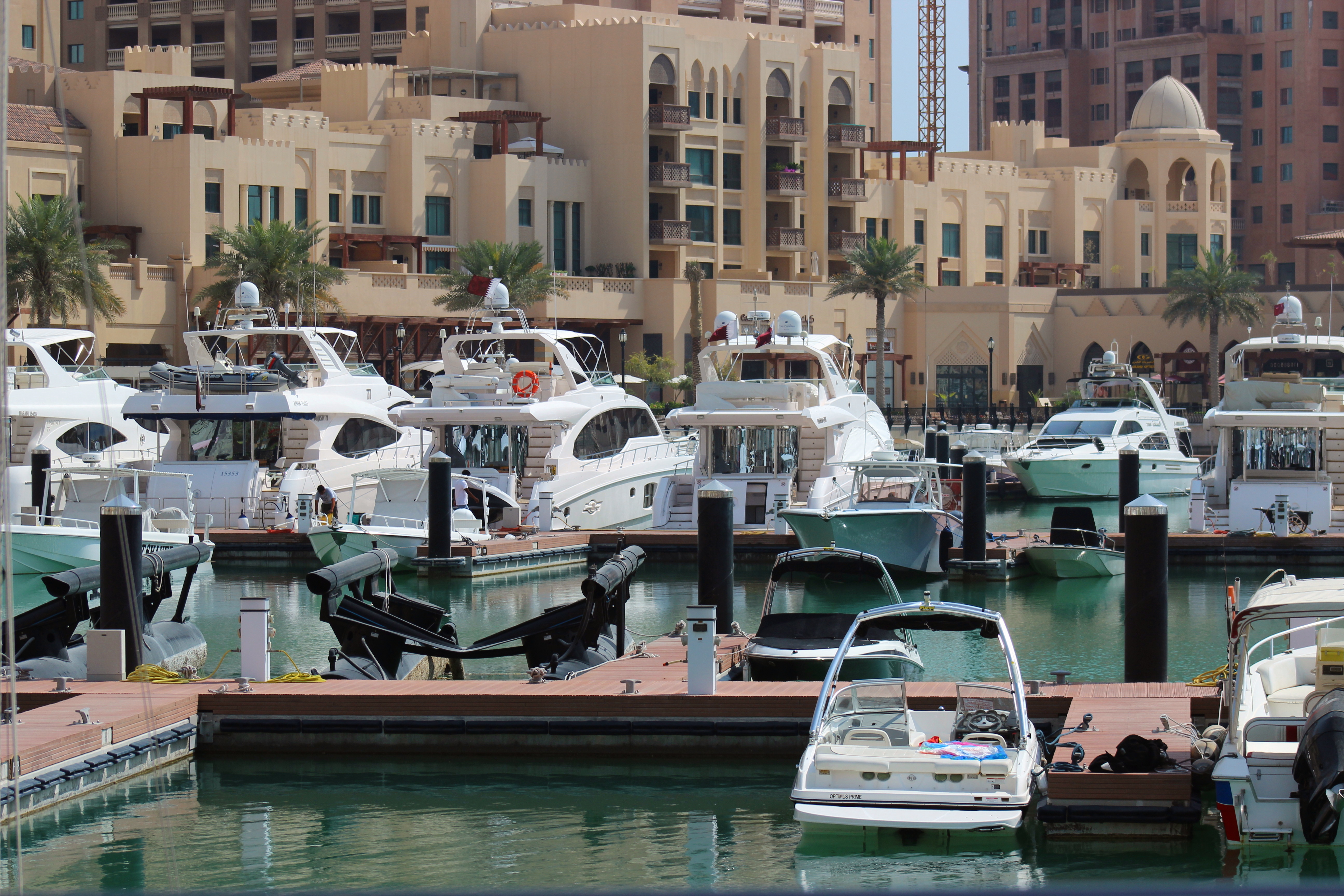 As ruas de The Pearl, um conjunto de ilhas artificiais ligado ao continente, têm nomes de famosos calçadões à beira-mar, como a Croisette, de Cannes, e Boardwalk, comum nos Estados Unidos, desde a Disney, na Flórida, a Santa Cruz, na Califórnia. Nos muitos canteiros de flores espalhados pela marina, caixas de som Bose reproduzem som de aves.