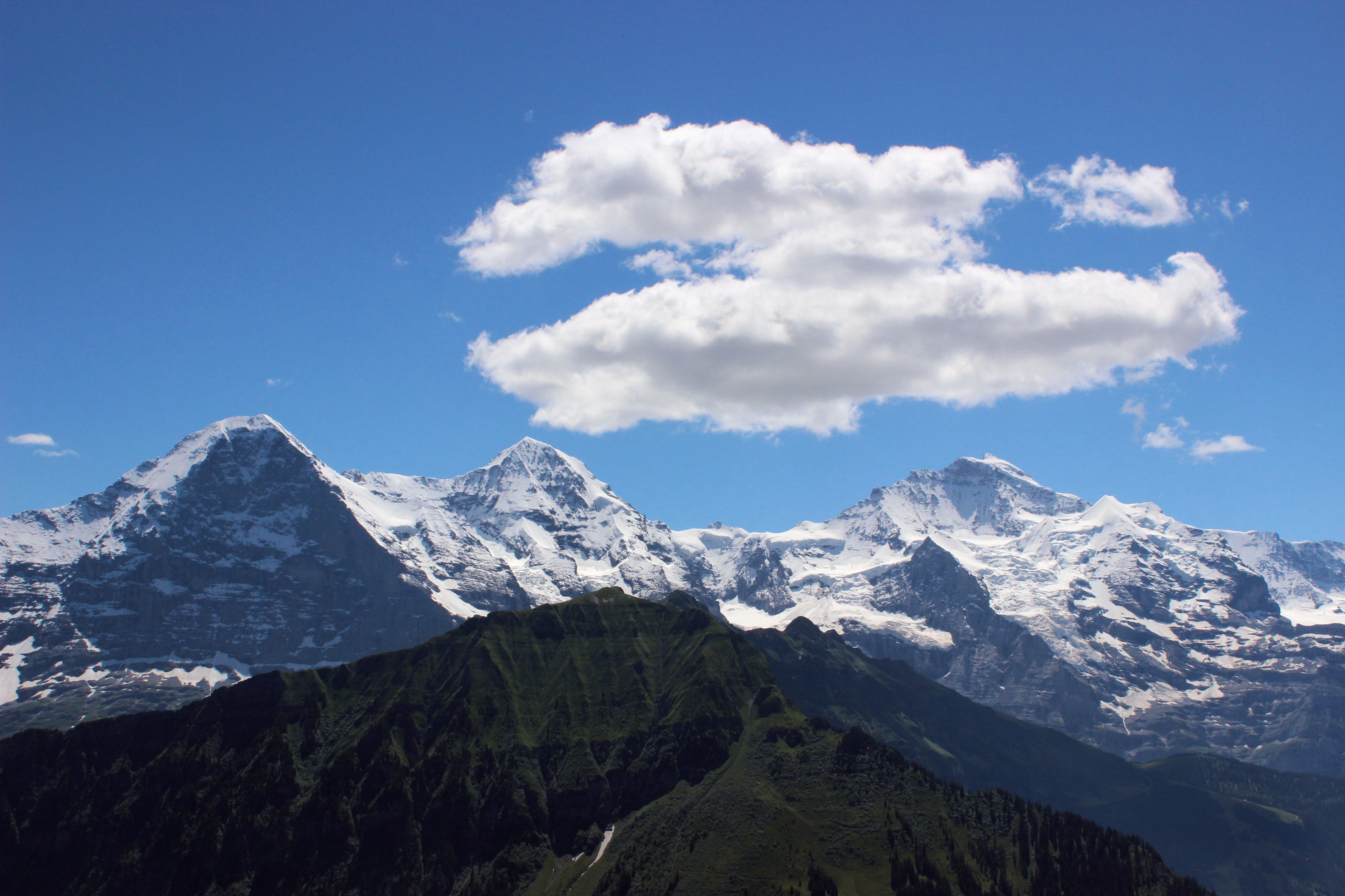 Eiger, Mönch e Jungfrau. O ogro, o monge e a virgem (em tradução livre) formam um dos mais impressionantes maciços da Suíça. Conquistada apenas em 1938, a espetacular face norte do Eiger, onde a rocha parece lisa em quase metade de seus 3.970 metros de altitude, ainda hoje é um desafio para alpinistas. Mönch se destaca entre as duas montanhas com seus 4.107 metros de altitude. E Jungfrau, com 4.158 metros de altitude, ao lado da geleira Alestch, é um ímã para turistas e uma das atrações mais visitadas do país em todas as estações do ano.